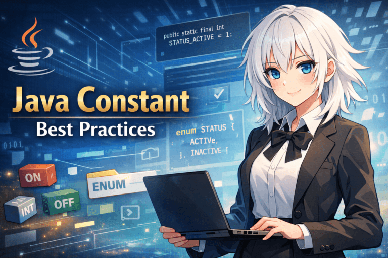 1. Javaにおける定数とは何か Javaにおける定数とは、「プログラムの実行中に値が変わらないことを前提としたデータ」を指します。数値や文字列などを固定値として扱い、意図しない変更を防ぐことが主な目的です。 初心者の方は、まず「定数=変更できない変数」と考えて問題ありません。 1.1 定数と変数の違い 通常の変数は、プログラムの途中で何度でも値を変更できます。 一方、定数は一度決めた値を後から […]